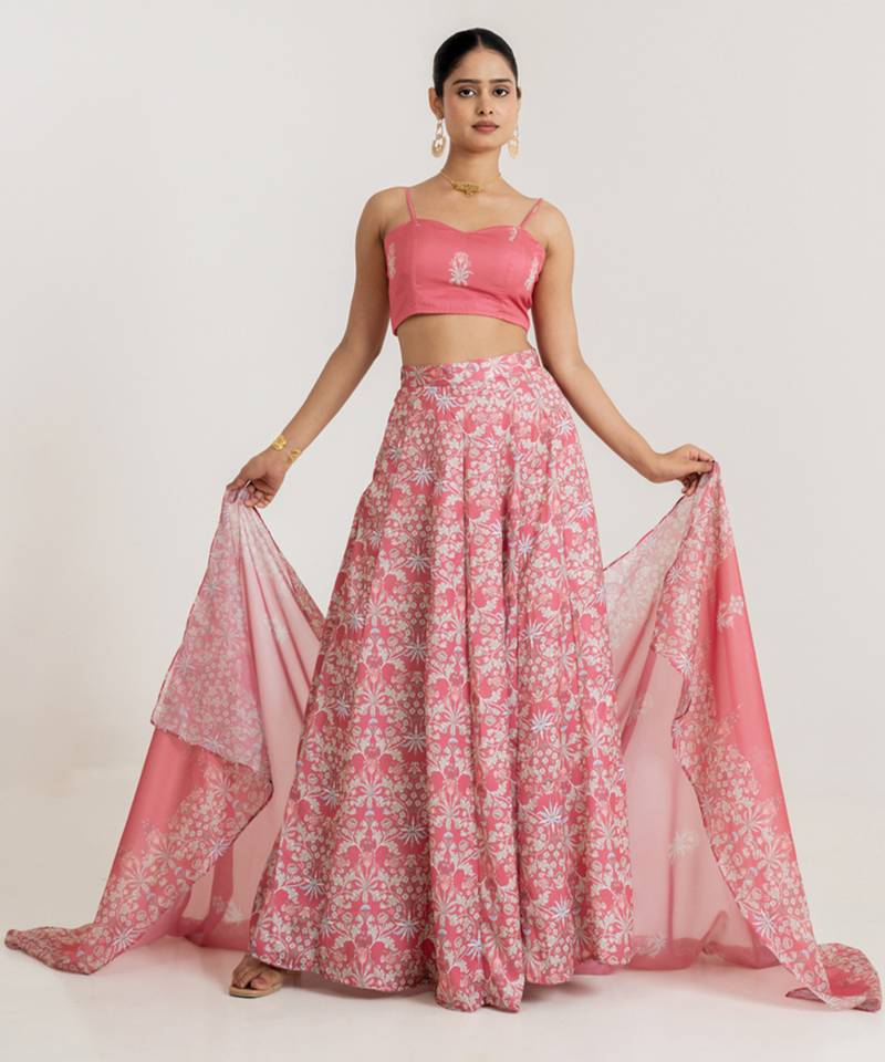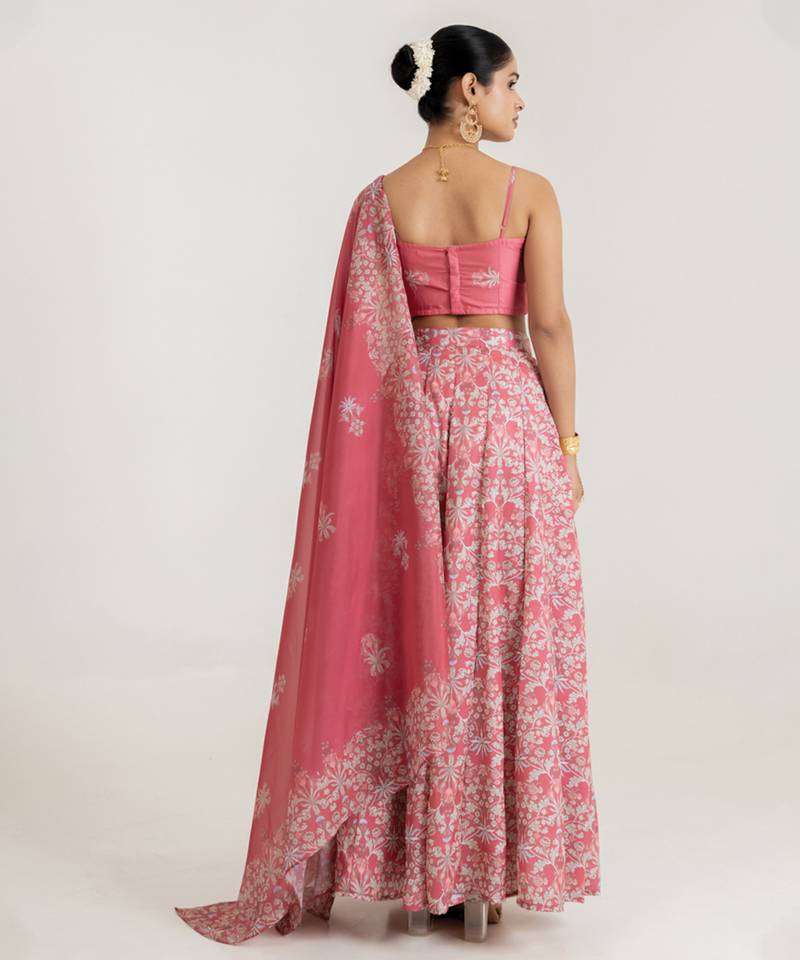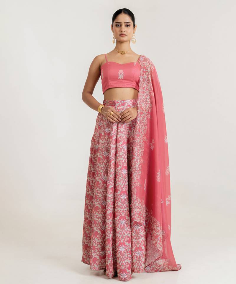| Product Name | Pink Satin Lehenga Set With Floral Print Work | |