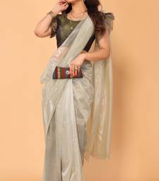 Pretty designer plain jimmy choo twill net saree with unstitched plain blouse piece