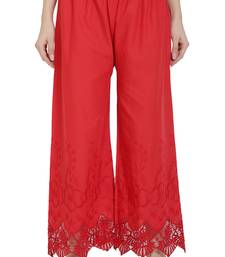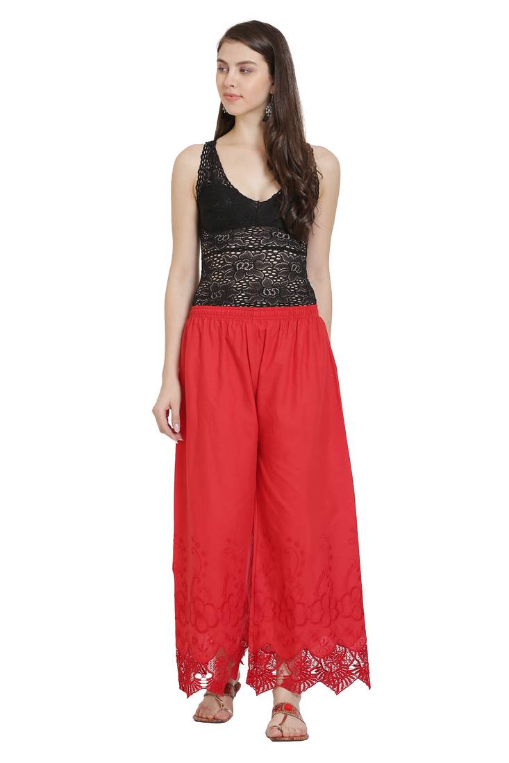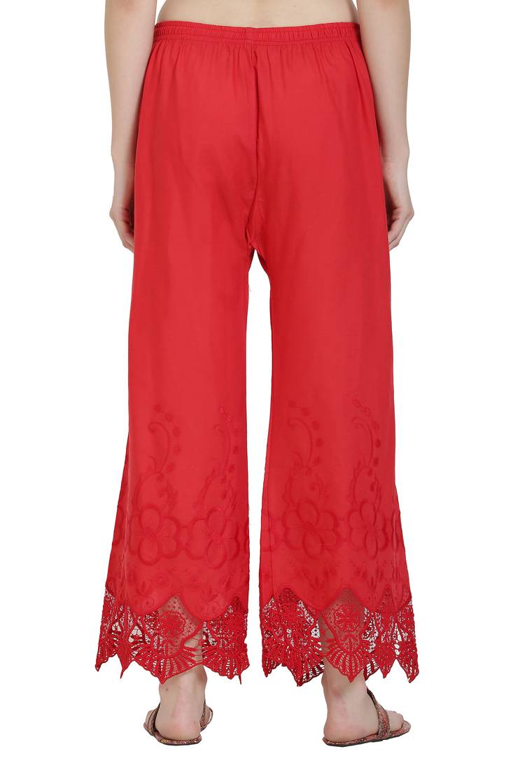 | Product Name | Pavonine Red Color Chikankari Lace Scalloped Hem Cotton Fabric Pant | |
