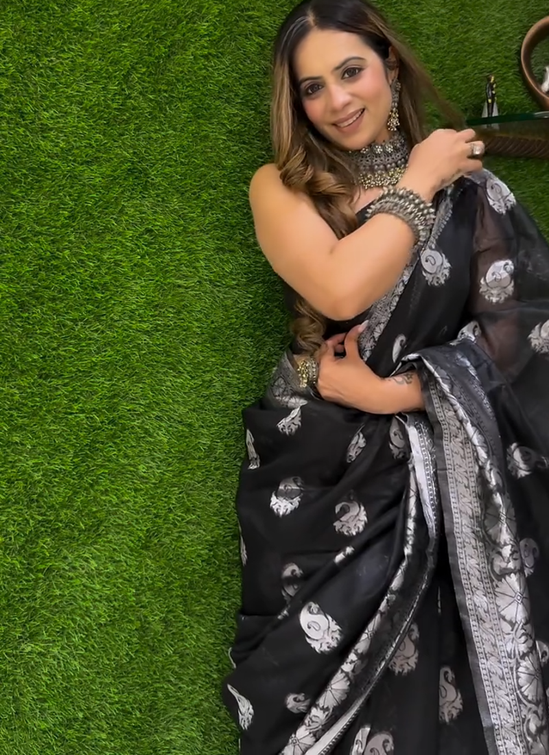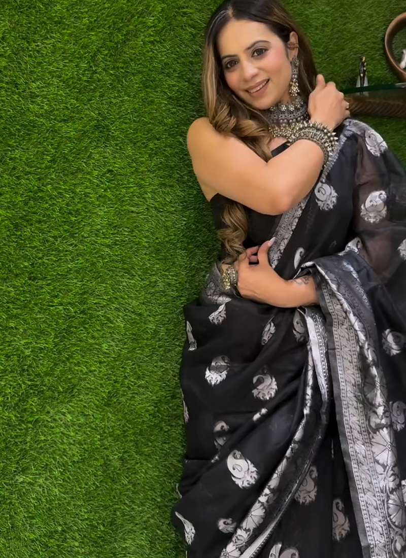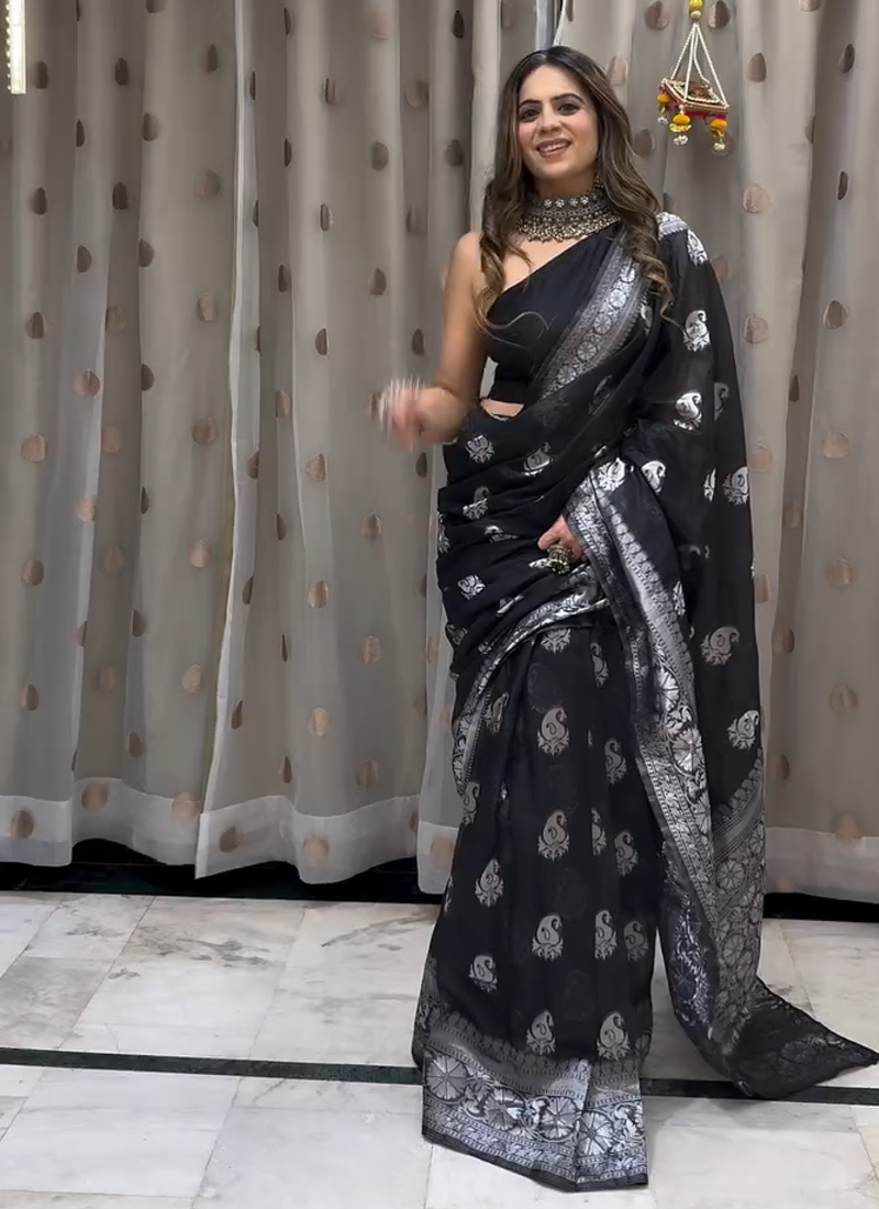 | • | Saree | : | Color- Black / Fabric- Cotton Silk |