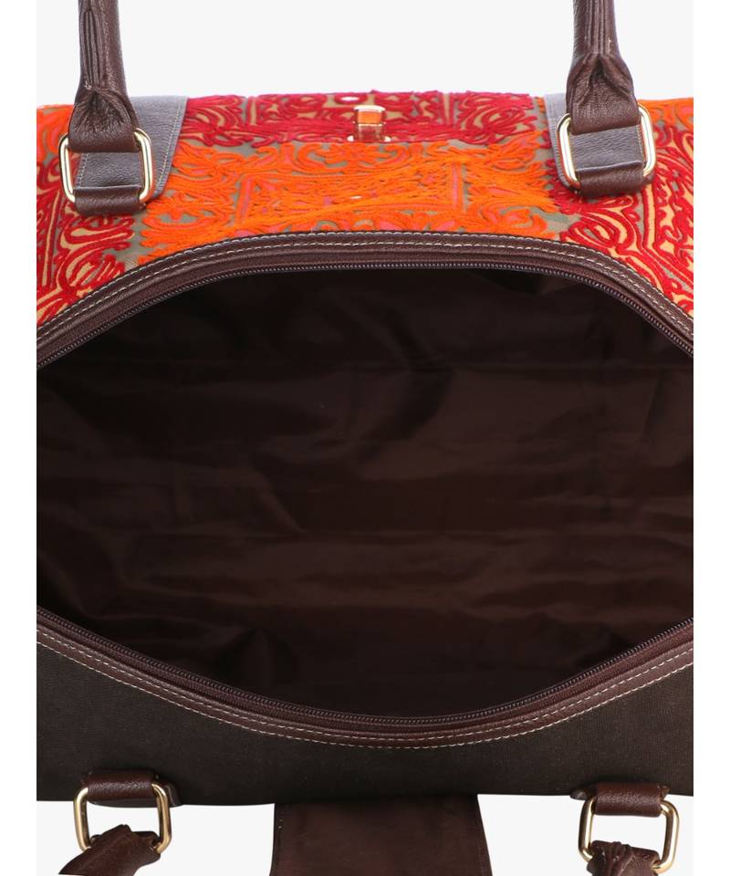 | Product Description | Carry Your Essentials In This Orange Embroidered And Mirror Worked Duffle Bag From Pick Pocket. This Canvas Bag Is Lightweight To Carry And Features A Wide, Capacious Compartment That Will Accommodate All Your Belongings Hassle Free. Finished With Zippered Closure And Twin Grab Handles, This Bag Will Keep Everything Inside Safe. |
