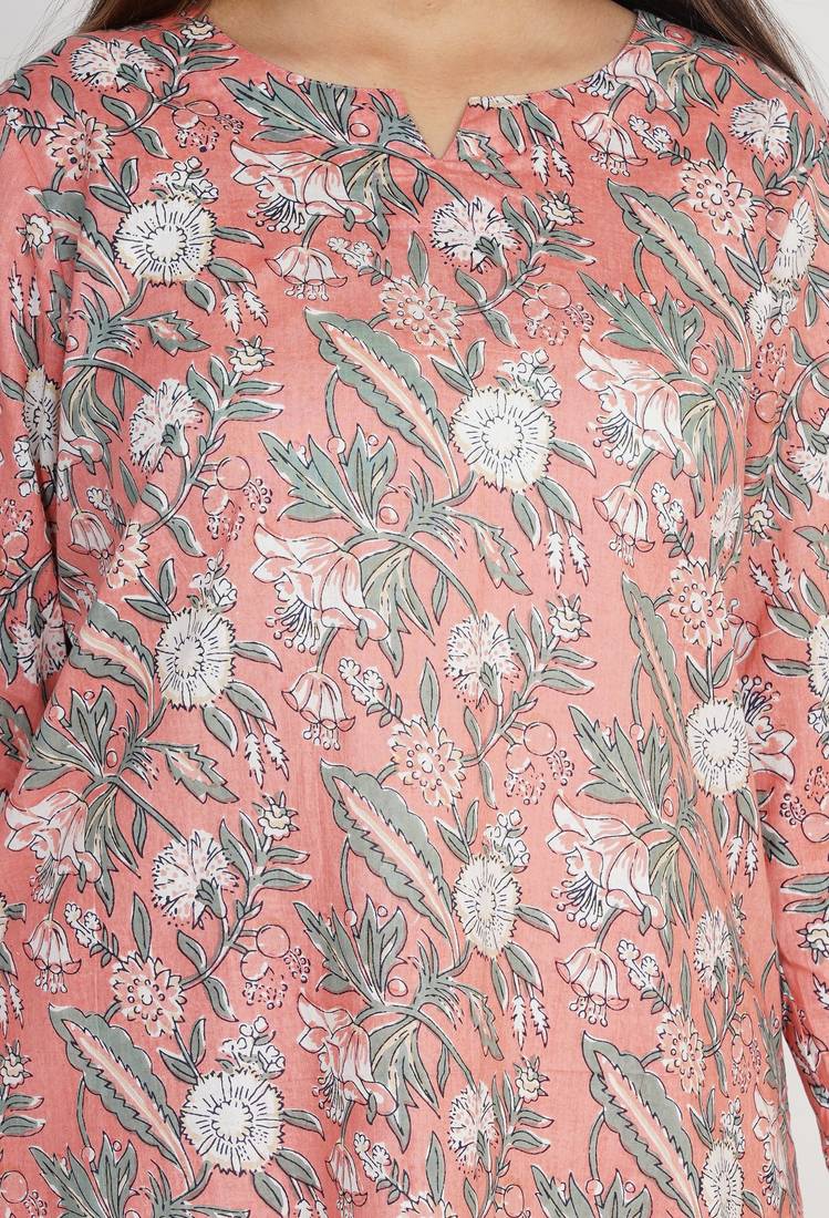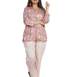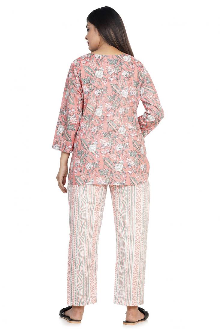 | Product Name | Peach Floral Printed With Stripes Pajama Set | |