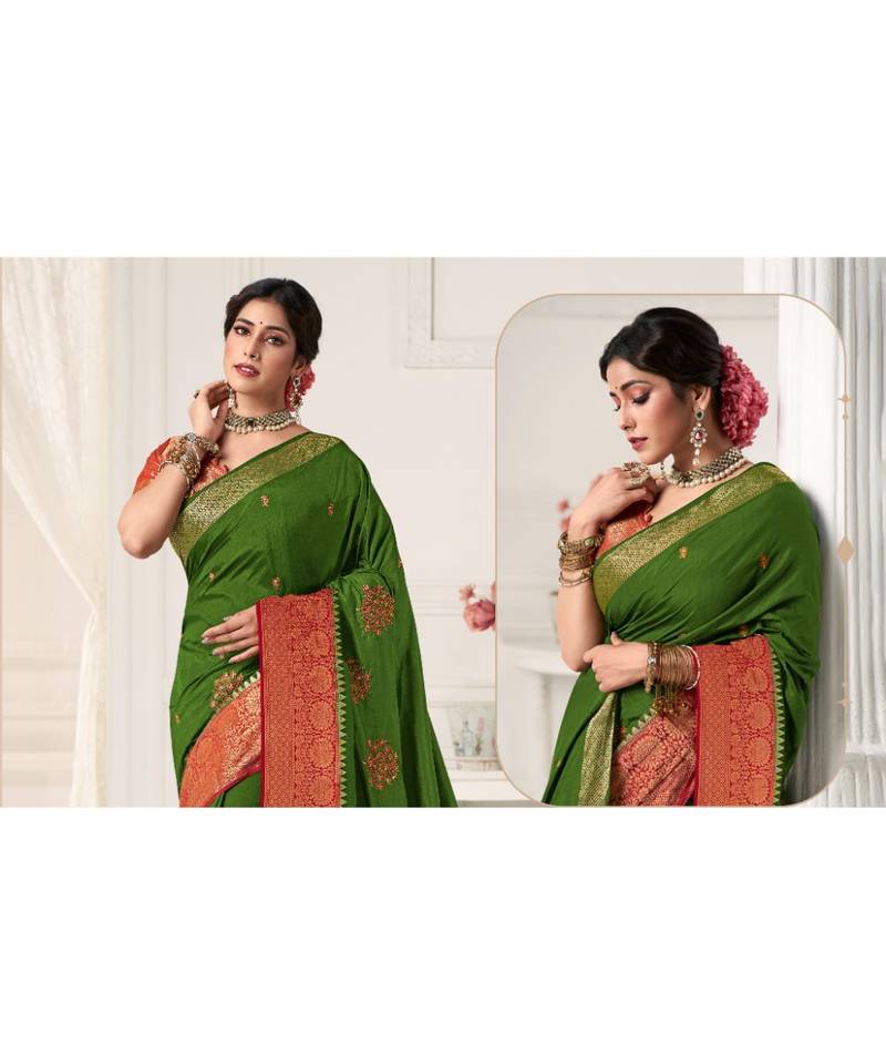 | Product Name | Dark Green Silk Embroidered Saree With Blouse | |