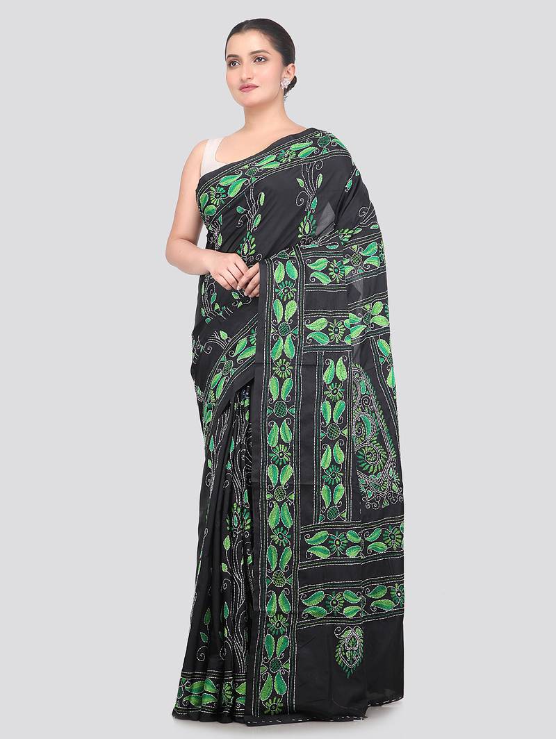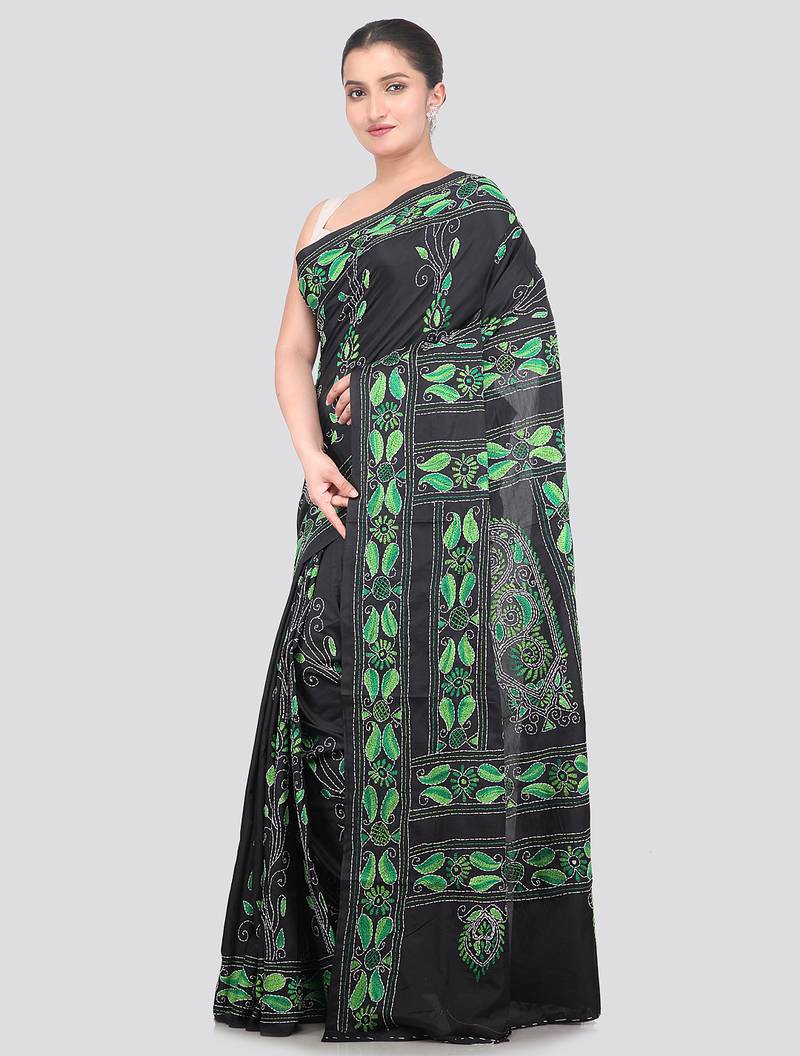 Product Name | Black Handloom Silk Embroidered Katha Stitch Work Saree With Blouse Piece | |