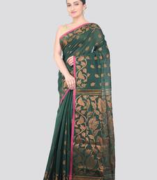 Green handloom cotton bleand saree with blouse piece