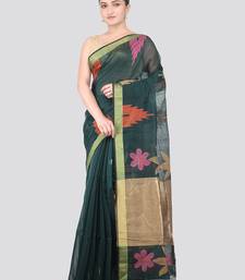 Green handloom cotton bleand saree with blouse piece
