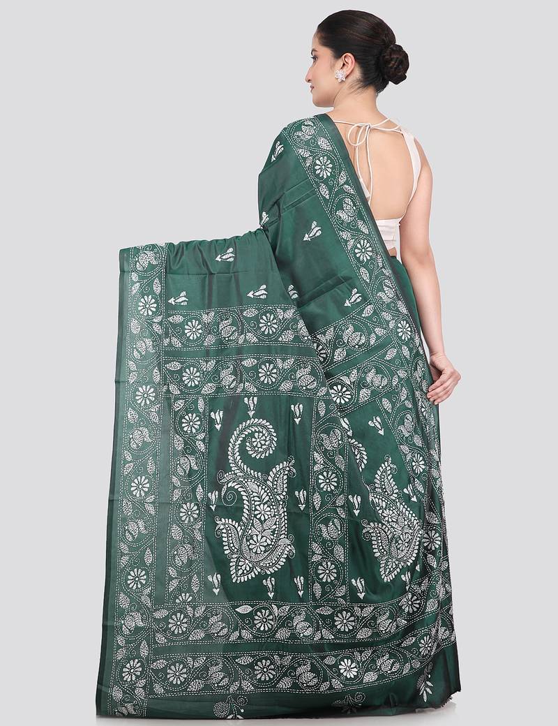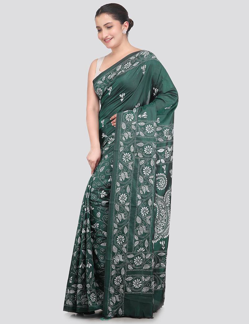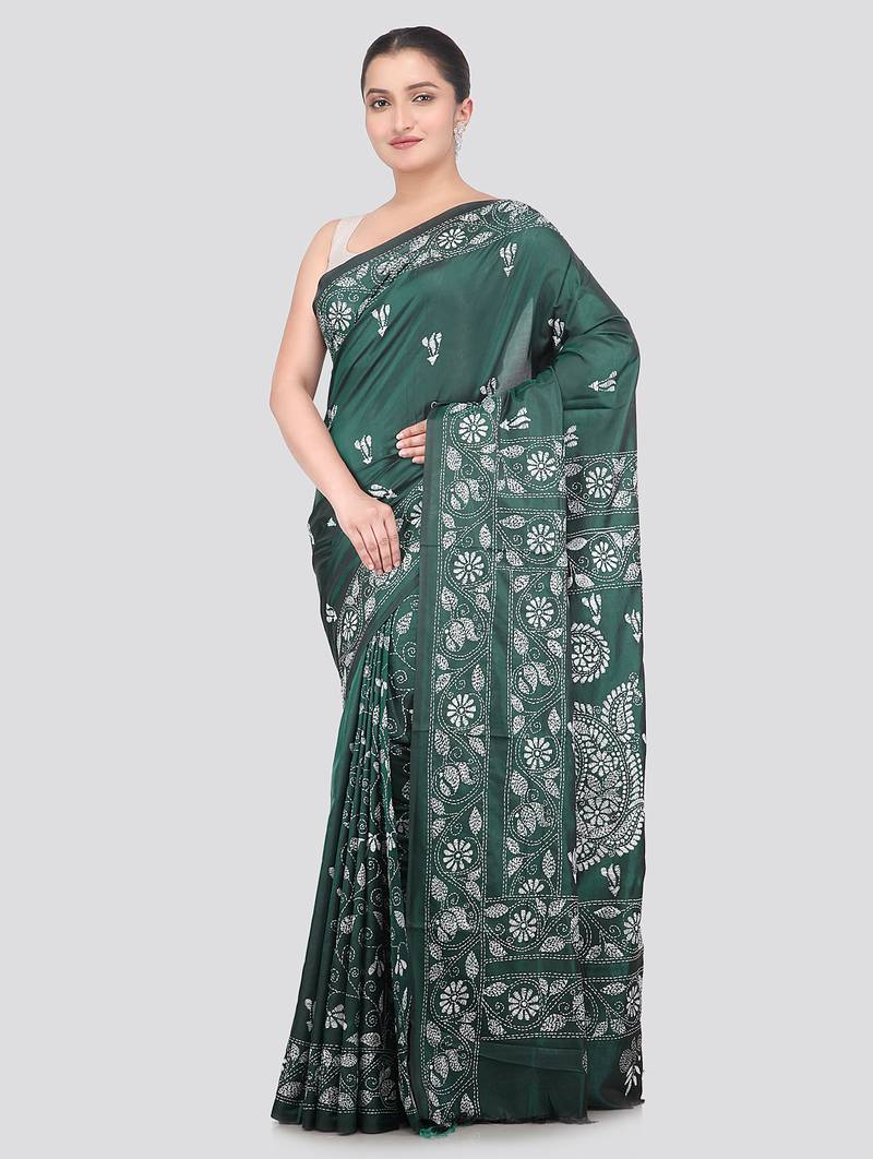 Product Name | Green Handloom Silk Embroidered Katha Stitch Work Saree With Blouse Piece | |