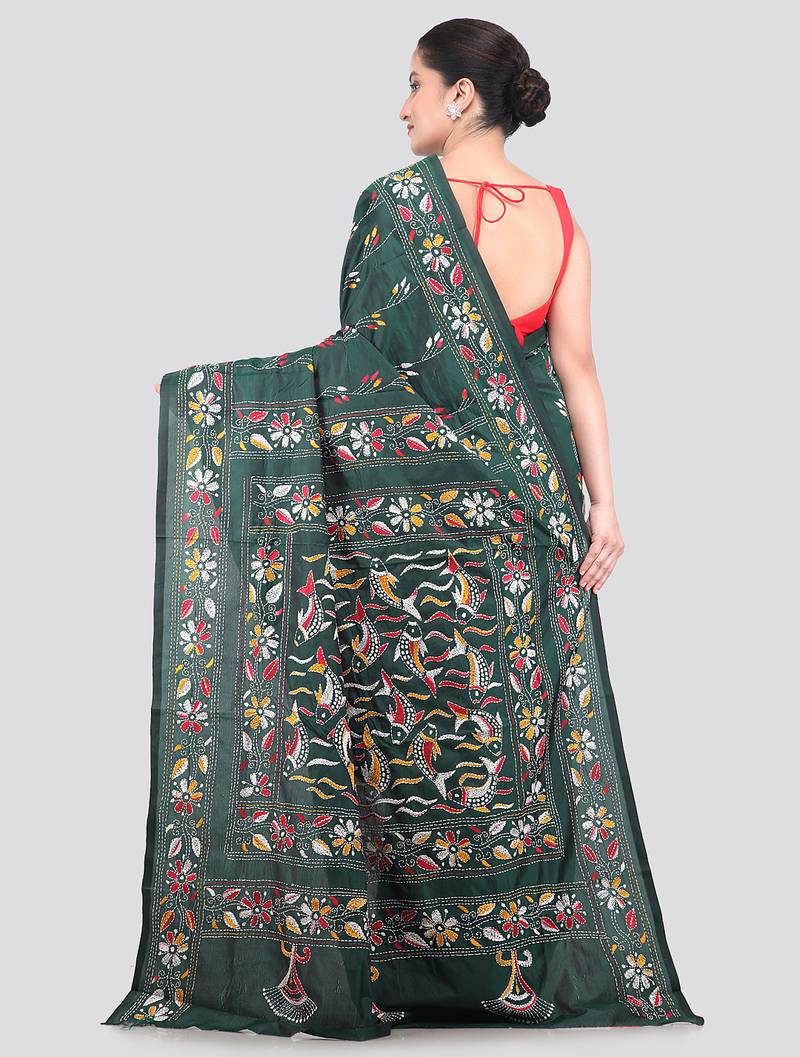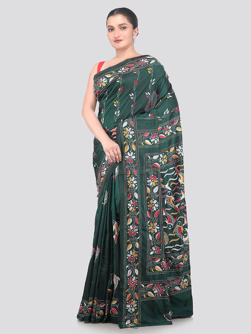 Product Name | Green Handloom Silk Embroidered Katha Stitch Work Saree With Blouse Piece | |