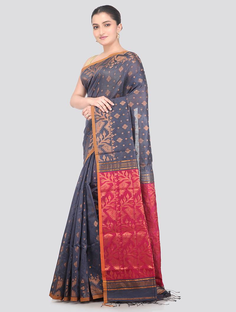• | Saree | : | Color- Grey / Fabric- Cotton Silk |