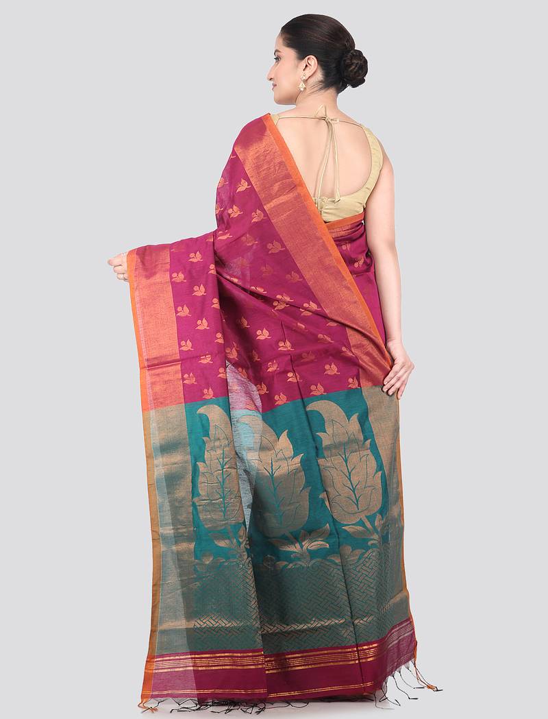 Magenta handloom cotton bleand saree with blouse piece