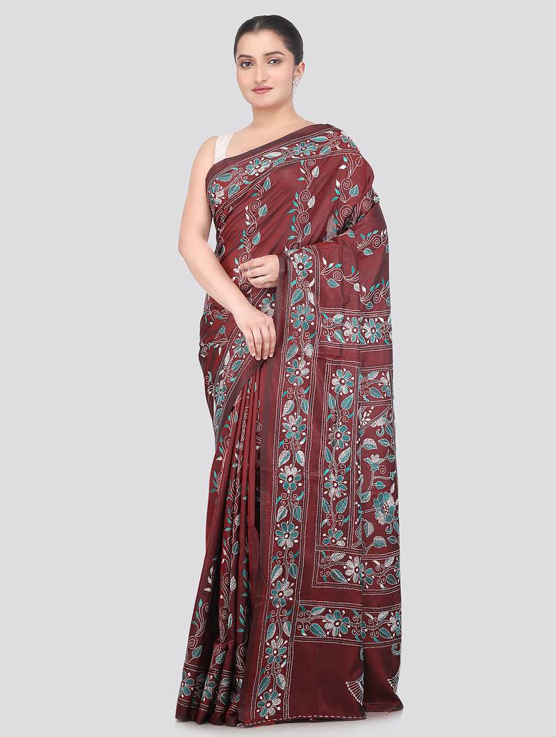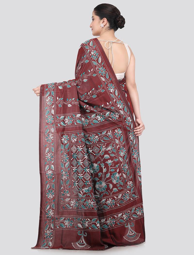 Product Name | Maroon Handloom Silk Embroidered Katha Stitch Work Saree With Blouse Piece | |