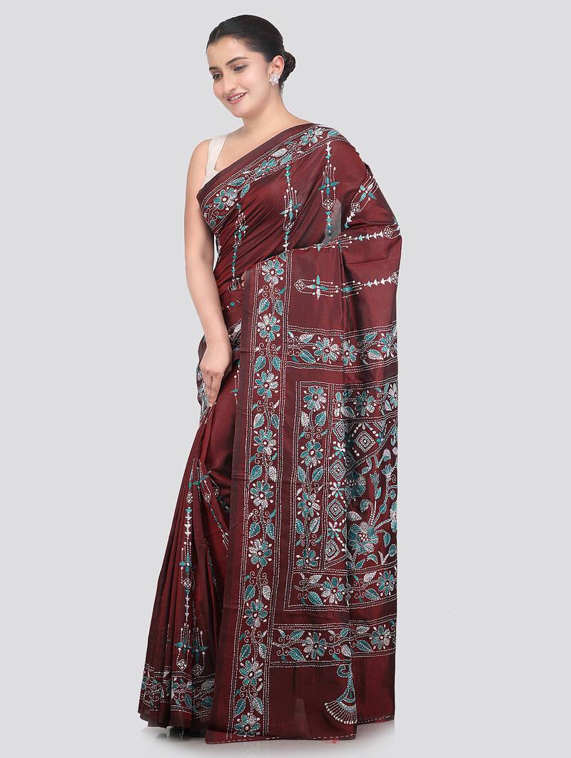 Product Name | Maroon Handloom Silk Embroidered Katha Stitch Work Saree With Blouse Piece | |