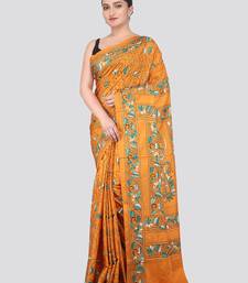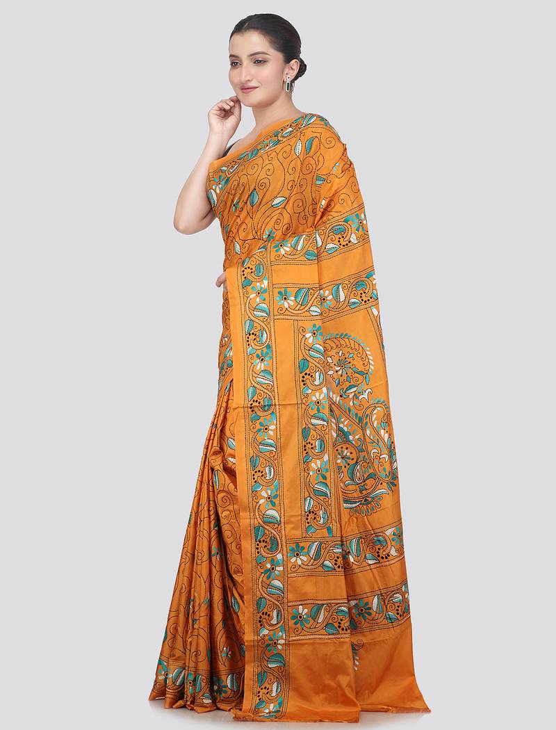 Product Name | Orange Handloom Silk Embroidered Katha Stitch Work Saree With Blouse Piece | |