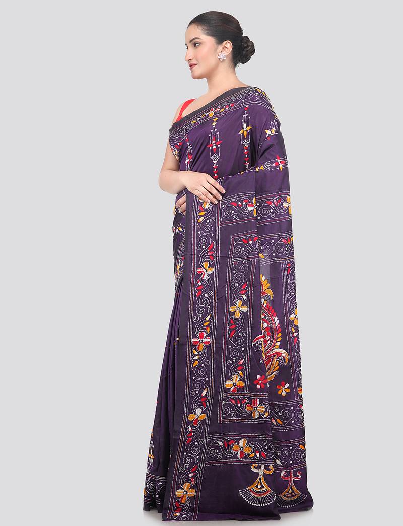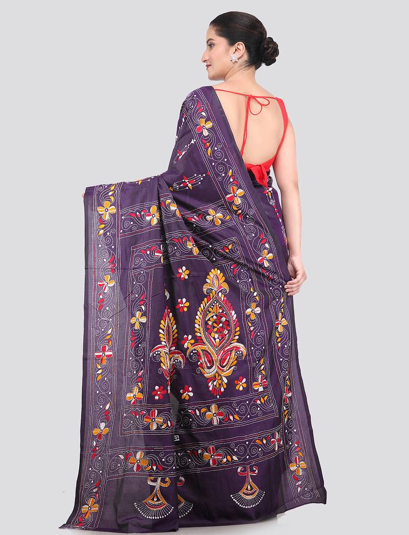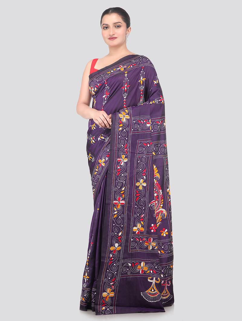 Product Name | Purple Handloom Silk Embroidered Katha Stitch Work Saree With Blouse Piece | |