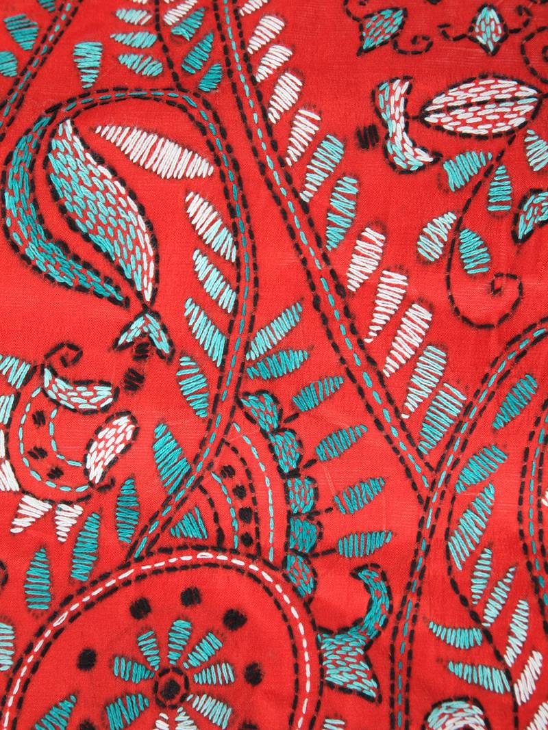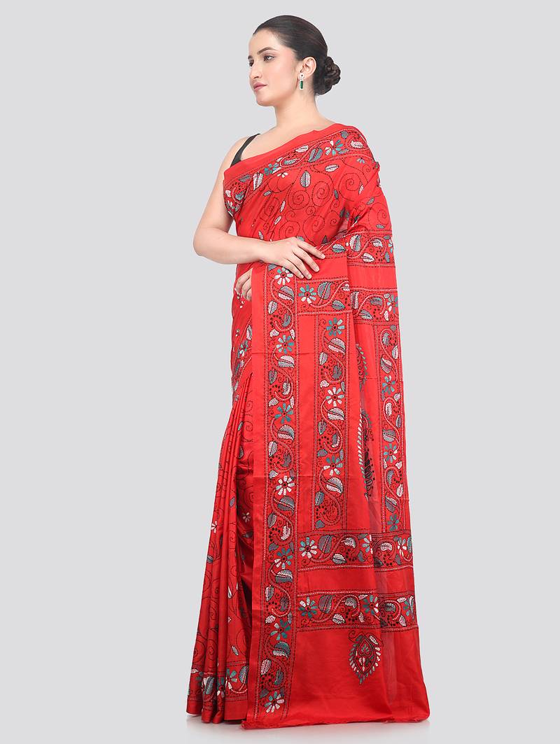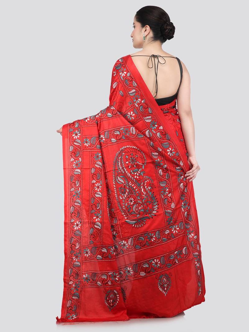 Product Name | Red Handloom Silk Embroidered Katha Stitch Work Saree With Blouse Piece | |