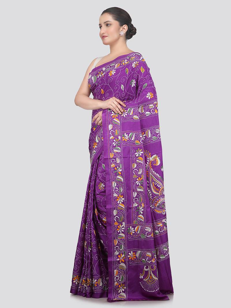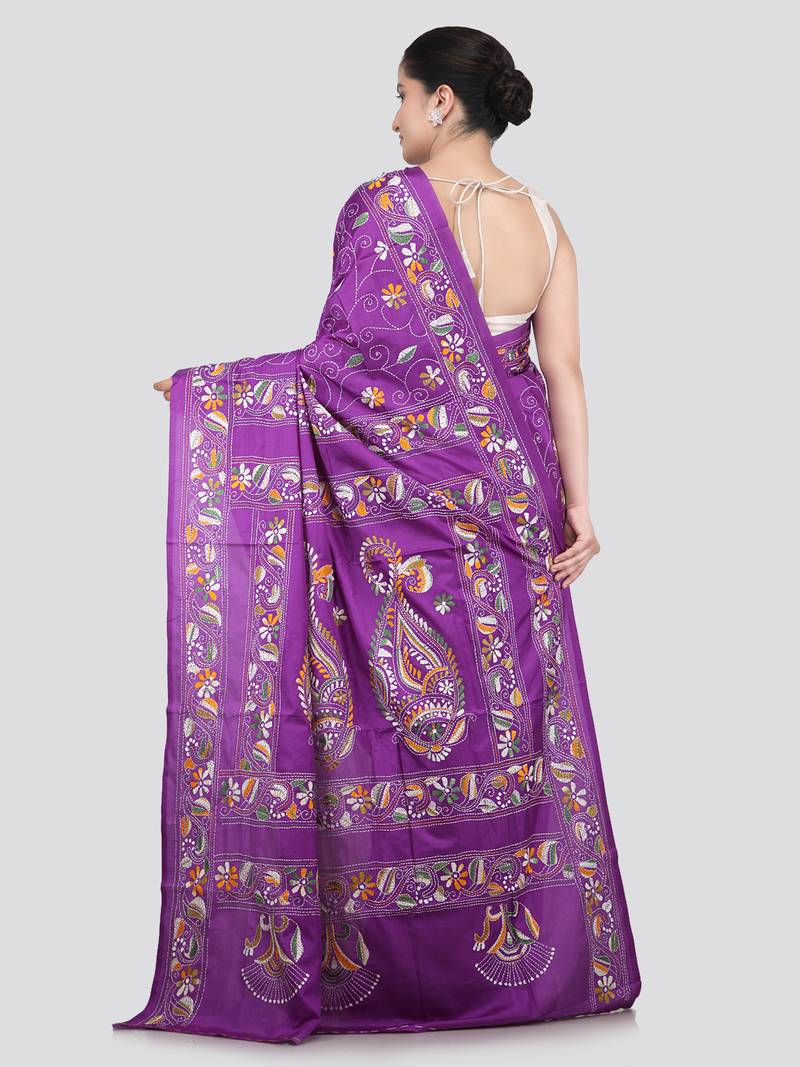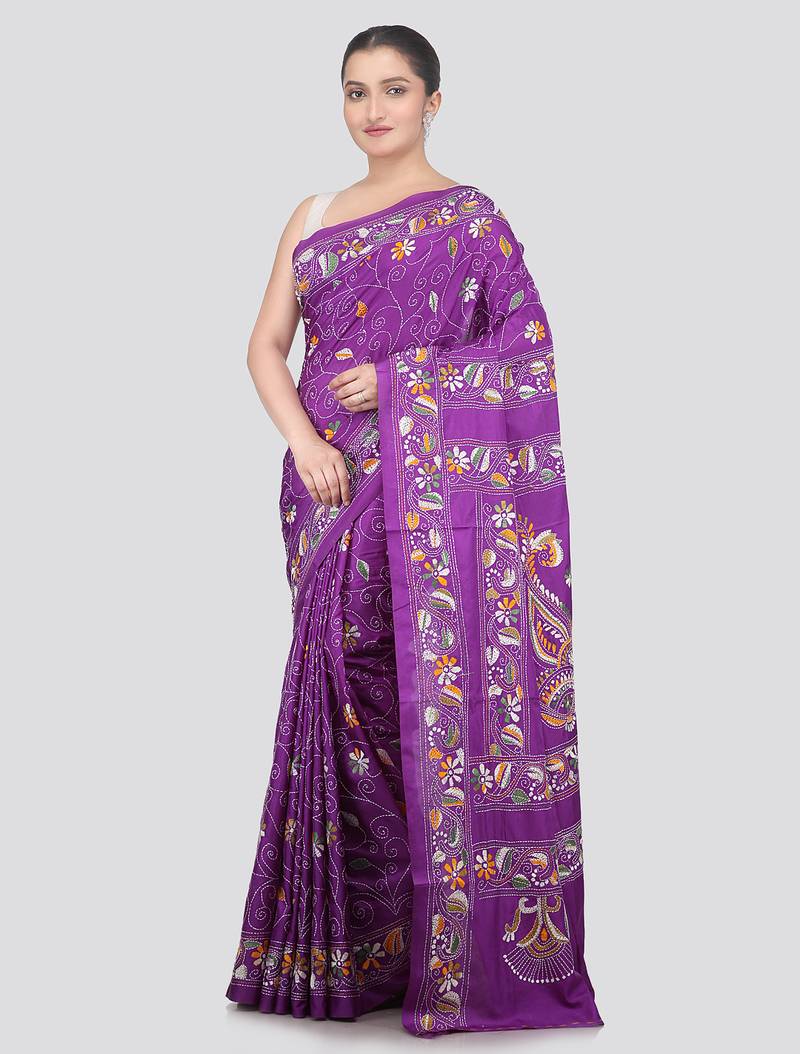 Product Name | Violet Handloom Silk Embroidered Katha Stitch Work Saree With Blouse Piece | |