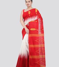White handloom cotton bleand saree with blouse piece