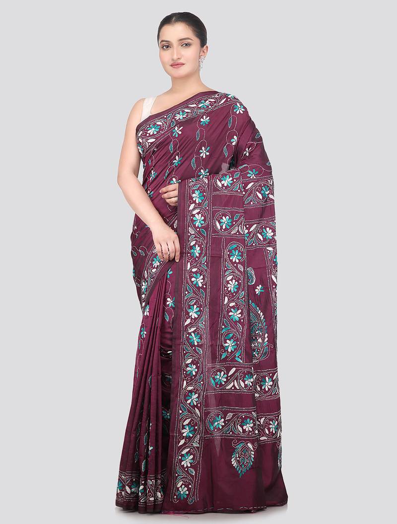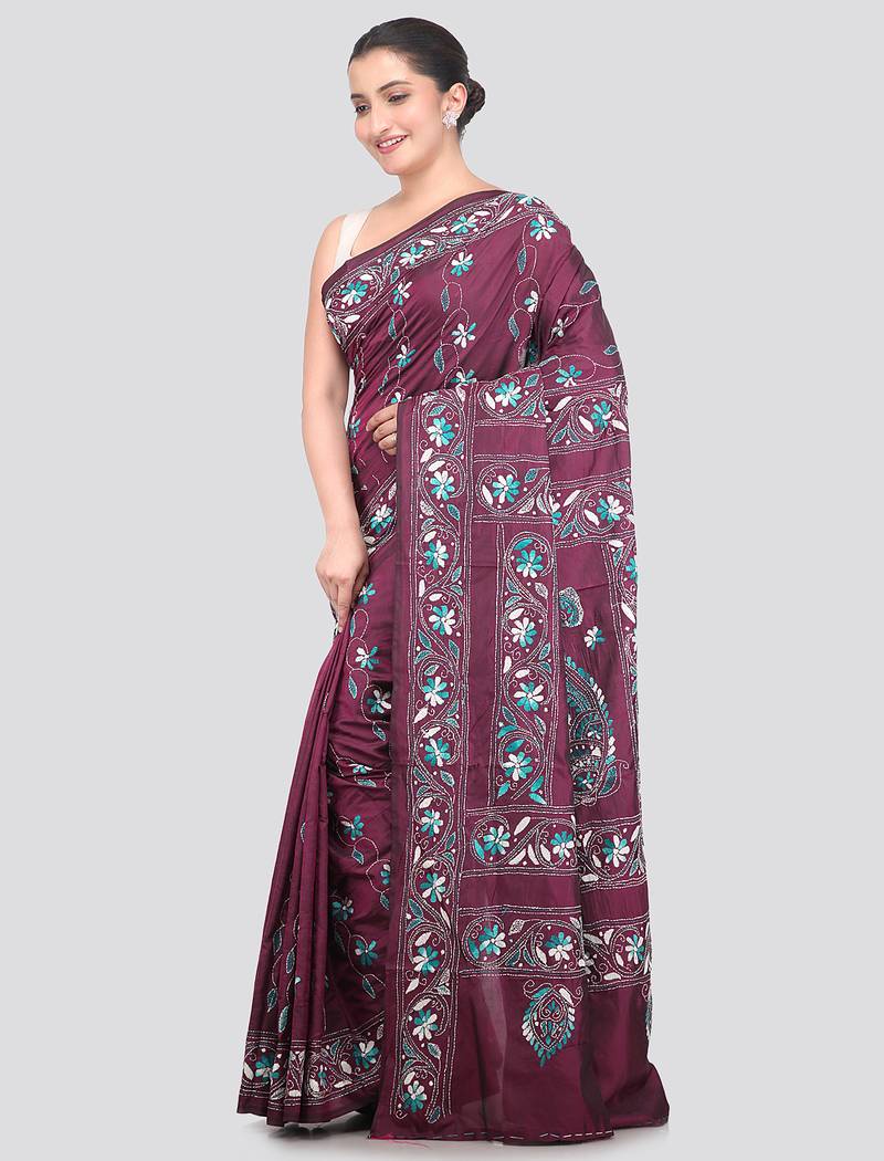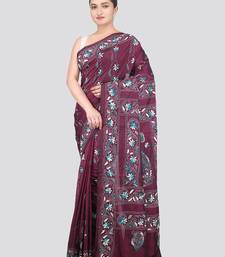 Product Name | Wine Handloom Silk Embroidered Katha Stitch Work Saree With Blouse Piece | |
