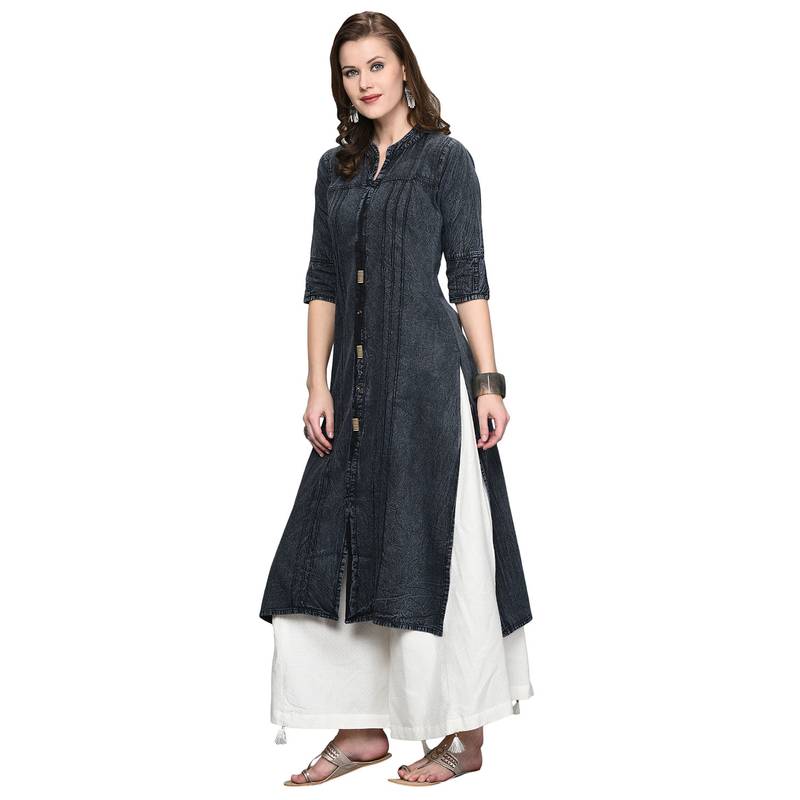 | Product Description | Black Denim Kurti With Stitched & Pintuck Work Pattern Detail, Three Quarter Sleeves . Kurti Dimension (Inches) Kurti Length 45", **Wash Care** Wash Dark Colour Kurti Separately, Do Not Bleach, Regular Wash, Regular Iron, Dry In Shade. ***Important***: Please Refer To The Size Chart Before Ordering. (Slight Variation In Color Is Possible. Model Images Are Only Representative.) |