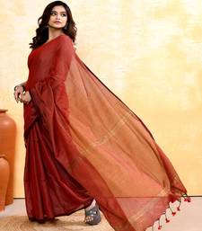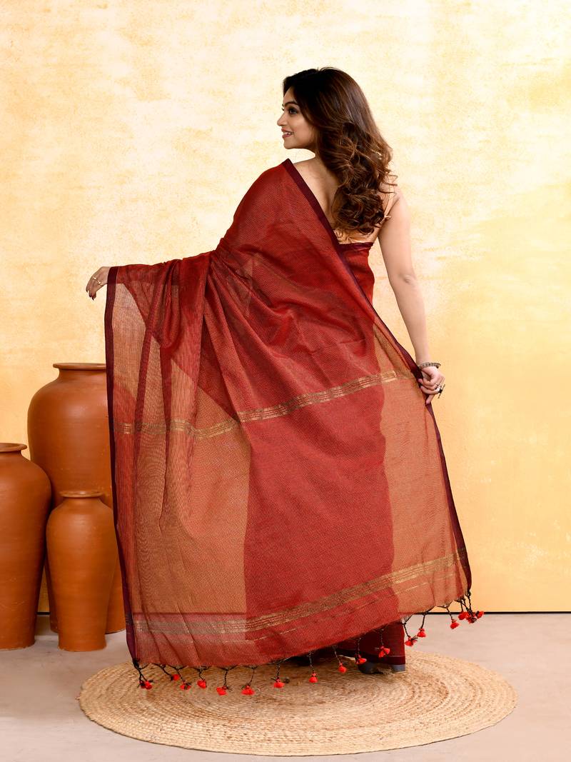 | Product Name | Maroon Embellished Cotton Blend Zari Check Handloom Saree | |