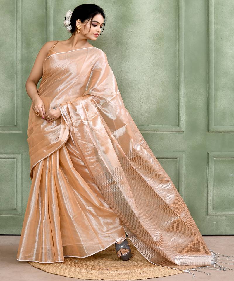 | Product Name | Beige Dual Tone Organic Tissue Saree With Blouse Piece | |
