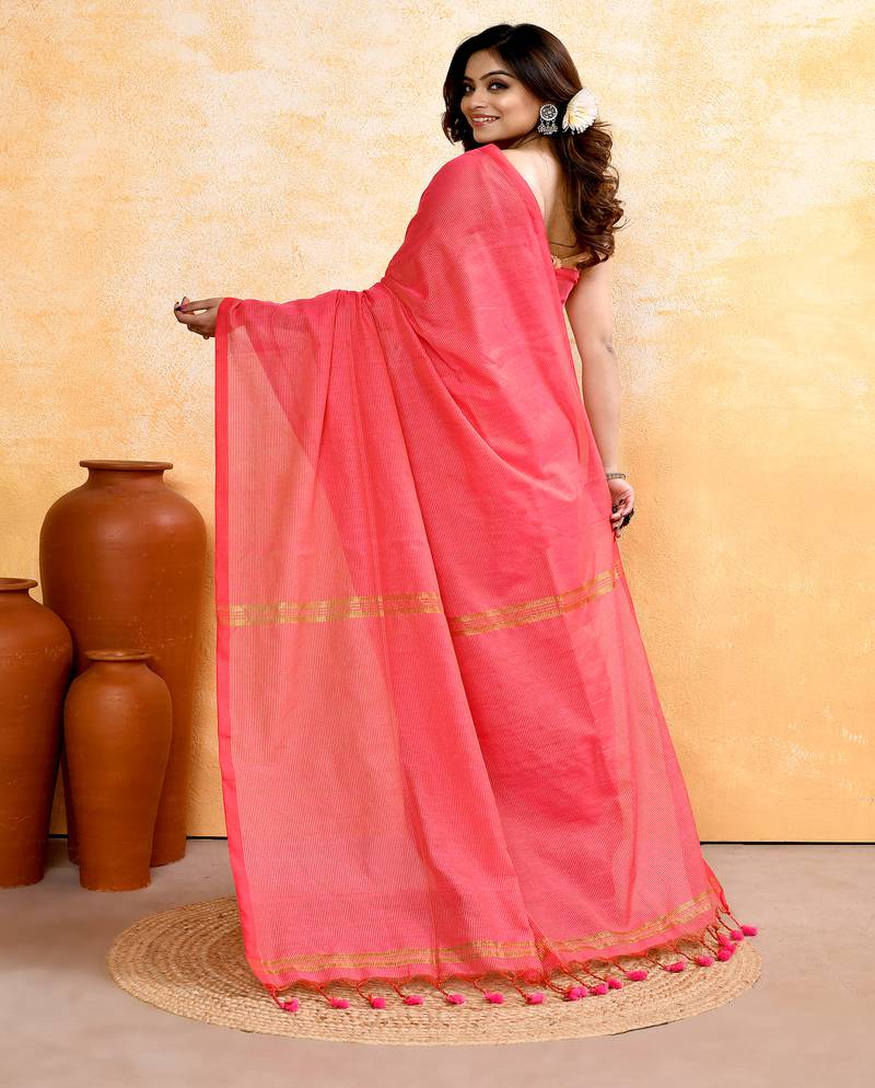 | Product Name | Pink Embellished Cotton Blend Zari Check Handloom Saree | |