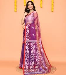 Purple resham silk jamdani saree with handwoven blouse