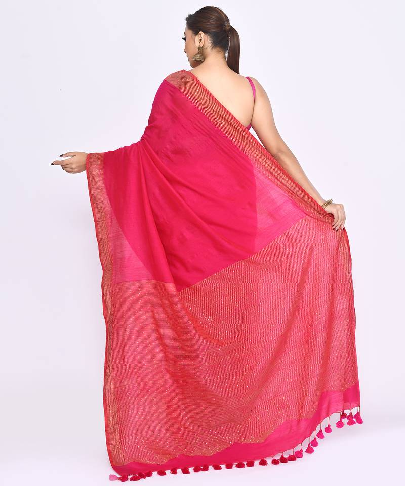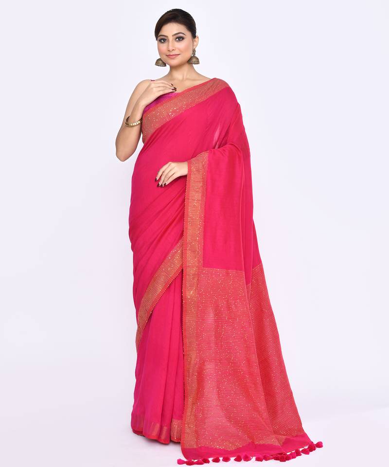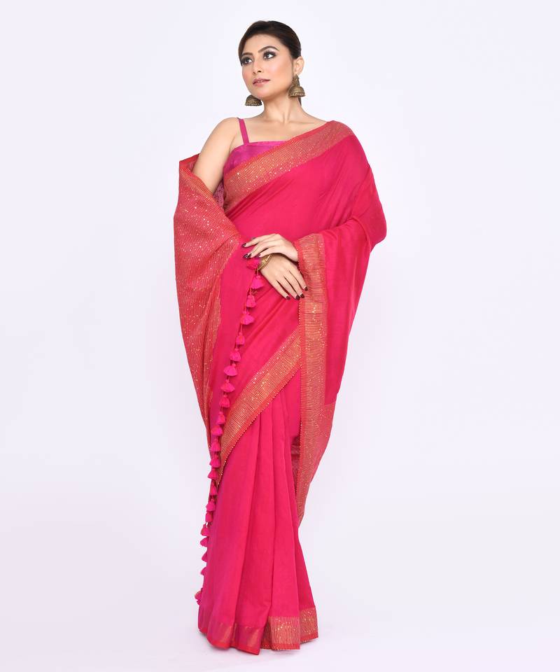 | Product Name | Women's Rani Pink Embellished Sequinned Cotton Saree | |