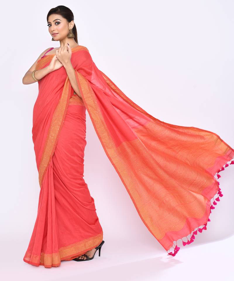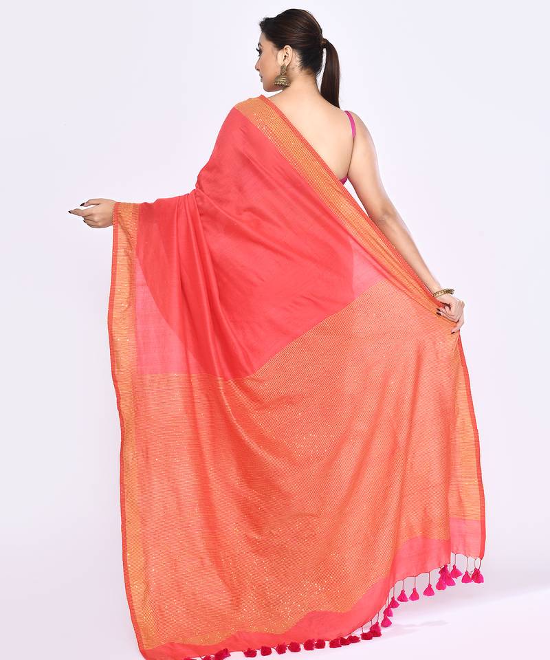 | Product Name | Women's Tomato Red Embellished Sequinned Cotton Saree | |