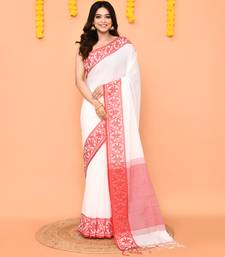 | Product Description | This White Cotton Handloom Saree Features Delicate Handwoven Patterns And A Contrasting Border That Enhances Its Traditional Design. The Saree Comes With A Matching White Cotton Blouse Piece In Unstitched Form For A Customized Fit. The Contrast Pallu Adds Depth And Elegance, Creating A Balanced And Refined Drape. Crafted From Breathable Cotton, This Bengal Handloom Saree Combines Lightweight Comfort With Ethnic Craftsmanship. Ideal For Casual Gatherings, Daytime Events, Or Relaxed Cultural Occasions, It Highlights Subtle Handwoven Detailing, Versatile Styling, And A Designer Inspired Look While Maintaining Soft Texture And Graceful Flow. |
