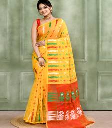 Women's yellow embellished cotton blend jamdani saree