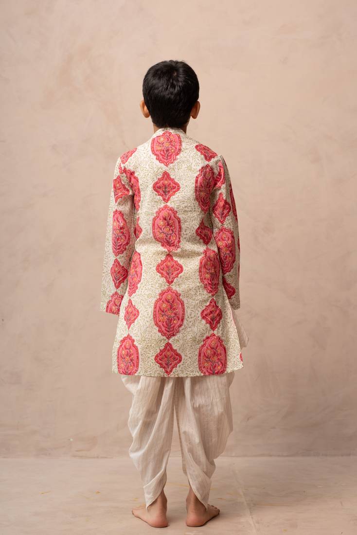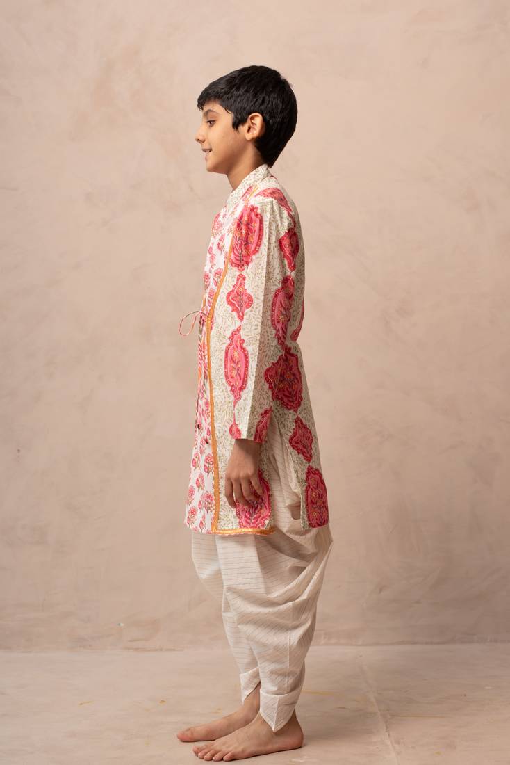 | Product Description | Celebrate Tradition With A Sweet And Playful Twist In The Jharokha Angrakha Kurta Set. This Charming Ensemble Features A Full Sleeve, Button Up Kurta With An Elegant Angrakha Style Tie Up, Paired Perfectly With A Comfortable Dhoti. The Design Captures The Essence Of Classic Indian Style While Offering A Fun And Easy To Wear Look For Any Festive Occasion. Perfect For Little Ones Who Love To Twirl And Play In Timeless Fashion! |