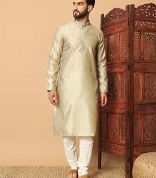 | Product Name | Beige Gold Zari Woven Jacquard Band Collar Kurta Pajama | |