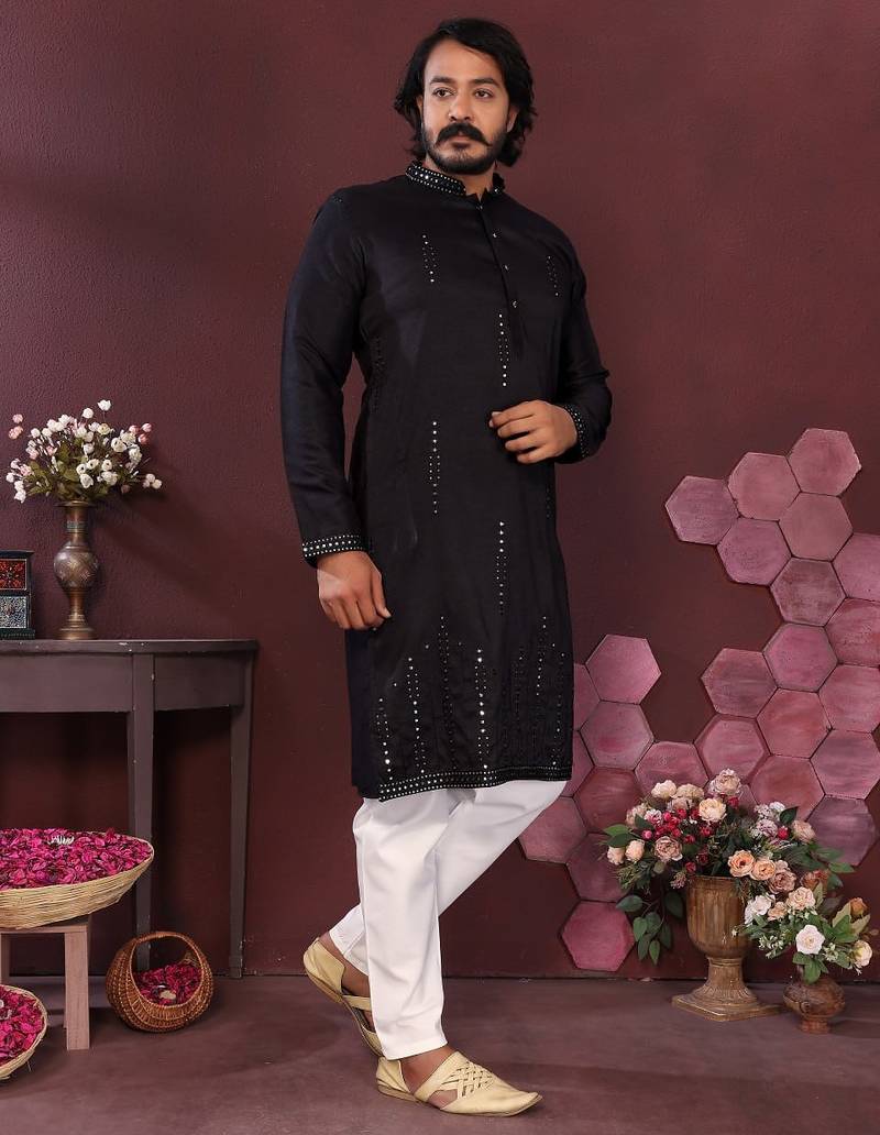 | Product Name | Black Mirror Work Cotton Blend Kurta For Men | Designer Festive Ethnic Wear Trendy Style | |