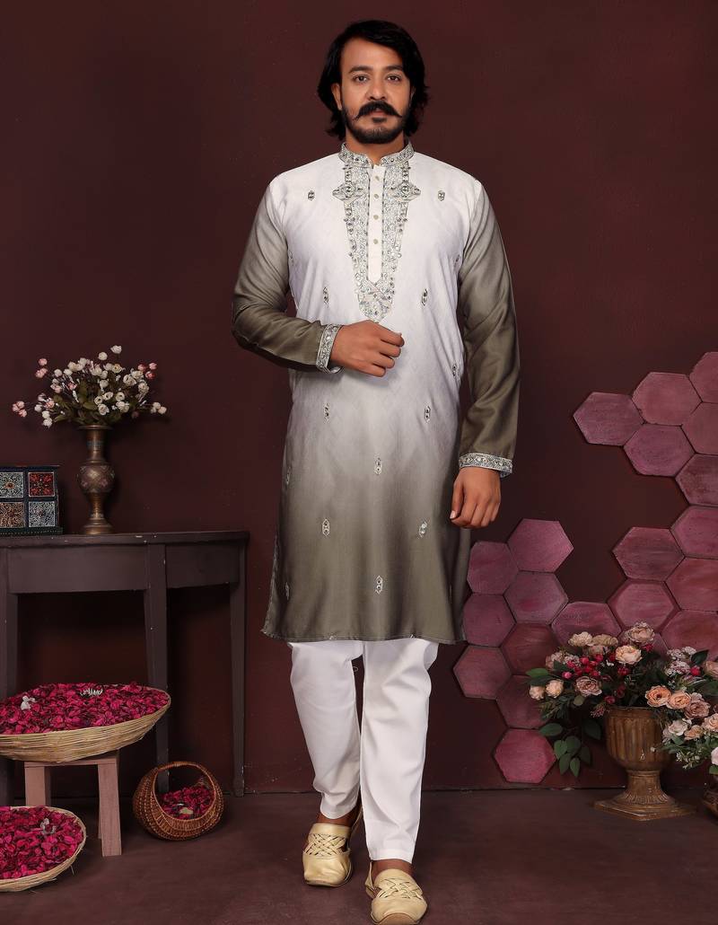 | Product Name | Grey & White Sequins Embroidered Cotton Kurta For Men | Festive Designer Ethnic Wear | |