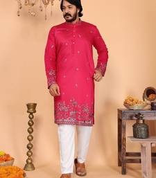 | Product Name | Pink Embroidered Linen Kurta Pyjama Set For Men Designer Festival & Wedding Wear | |