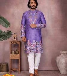 Purple khadi cotton kurta pyjama for men | designer sequence & neck embroidery set | festive wear