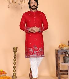 | Product Name | Red Embroidered Blended Cotton Band Collar Men's Kurta Pyjama Set For Wedding & Festive Wear | |