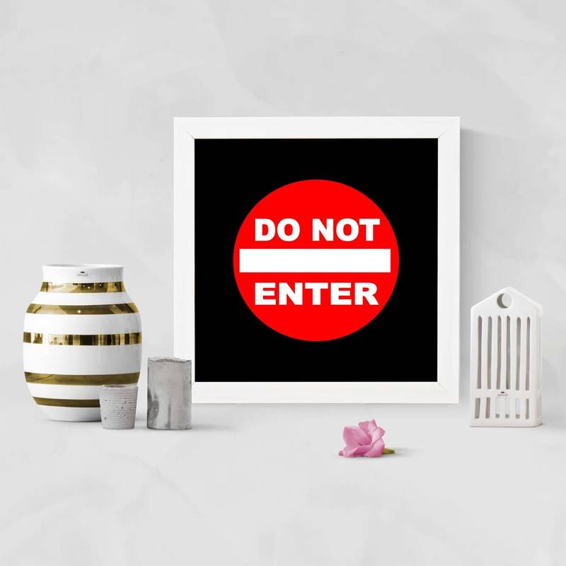 Do not enter humour white framed wall hanging art print for office home reading room ( 8x8 ) inch