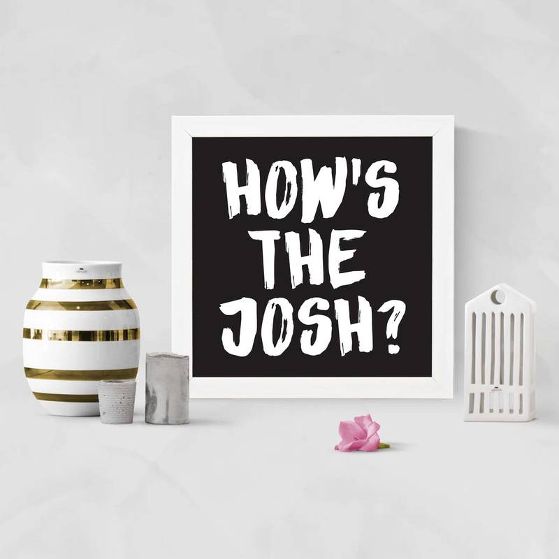 How's The Josh? Typography White Framed Wall Hanging Art Print For Office Home Reading Room ( 8x8 ) Inch