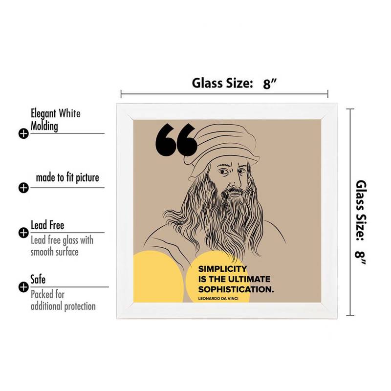 Leonardo Da Vinci Quotes Motivational White Framed Wall Hanging Art Print For Office Home Reading Room ( 8x8 ) Inch