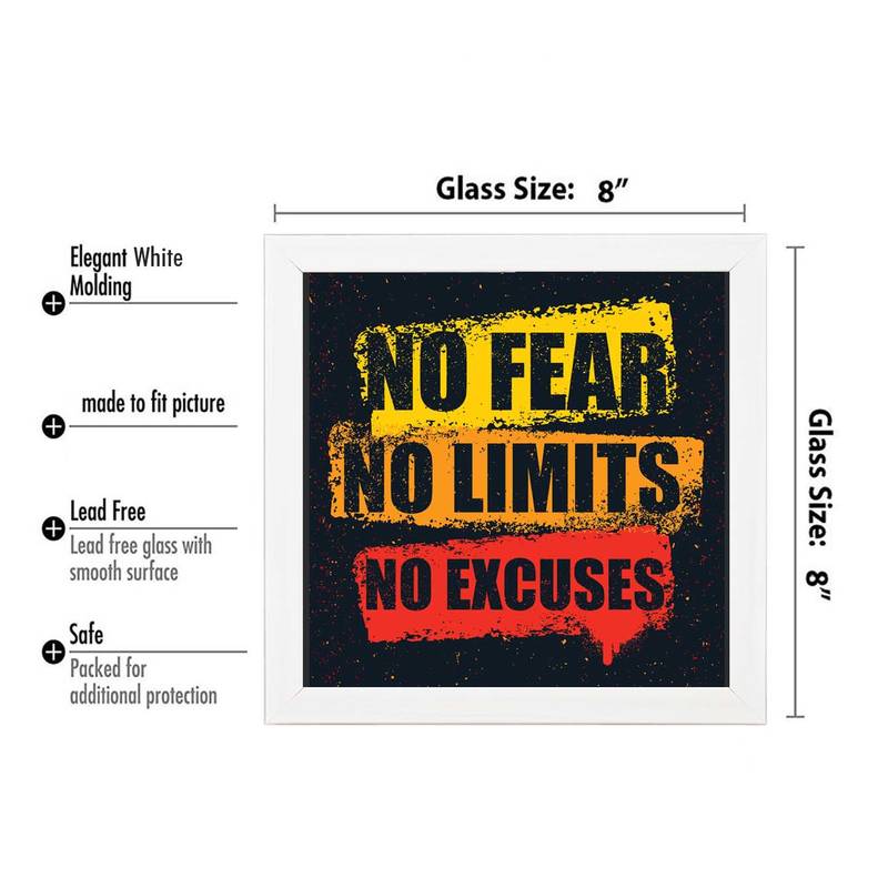 No Excuses Gym White Framed Wall Hanging Art Print For Office Home Reading Room ( 8x8 ) Inch