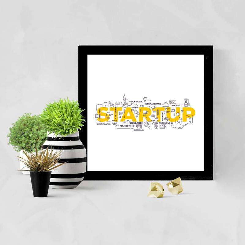 Start Up Work Typo Office Wall Framed Posters & Art Prints Will Add Meaning To Your Rooms, Filling Them With Color. They Would Not Only Spread Good Vibes And Thoughts But Also Spread Positive Energy In You And The People Around You. High Quality Framed Art Print The Art Print On Premium 300 Gsm Thick Paper. This Product Comes With Protected Glass Framed And Can Be Wall Mounted With The Help Of Hooks Screwed At The Back. Gifting Inspiration It Serves As A Perfect Gift For Special Occasions Such As Birthday, Festival, Marriage, Anniversary And Home Opening/ House Ceremony. Its Inspiring Theme And The Attractive Designs Would Really Give Them Something To Remember You. Reflect Your Personality & Attitude Let Your Home Or Office Speak The Language You Want & Reflect The Personality.
