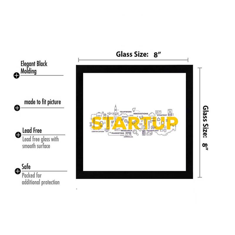 Startup work typo office black framed wall hanging art print for office home reading room ( 8x8 ) inch