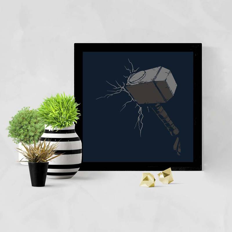 Thor hammer super hero's black framed wall hanging art print for office home reading room ( 8x8 ) inch