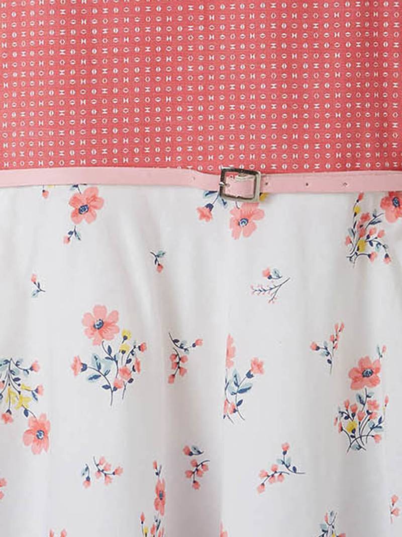 | Product Description | Take Her Glam Quotient One Notch Up By Getting Her This Cute Peach Dress From The Brand Powderfly. It Is Featured With A Round Neck, Cap Sleeves And Has A Zip Closure At The Back. It Comes With A Floral Print On The Lower Panel And Polka Dot Print On The Upper Panel. Also, Has A Belt In Between To Ensure Proper Fitting. It Is Crafted With Rich Cotton And Takes Care Of The Comfort During Long Hours. Club It With Strappy Flats To Complete The Look. |