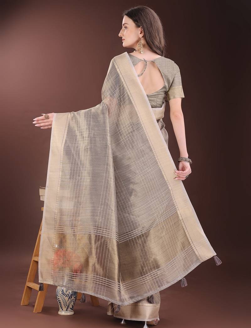 | Product Name | Beige Color Solid Orgenza Zari Border Saree | |