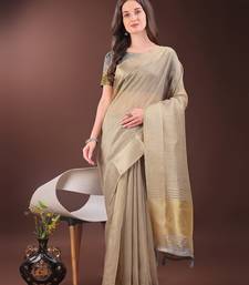 Beige color zari border orgenza saree with blouse