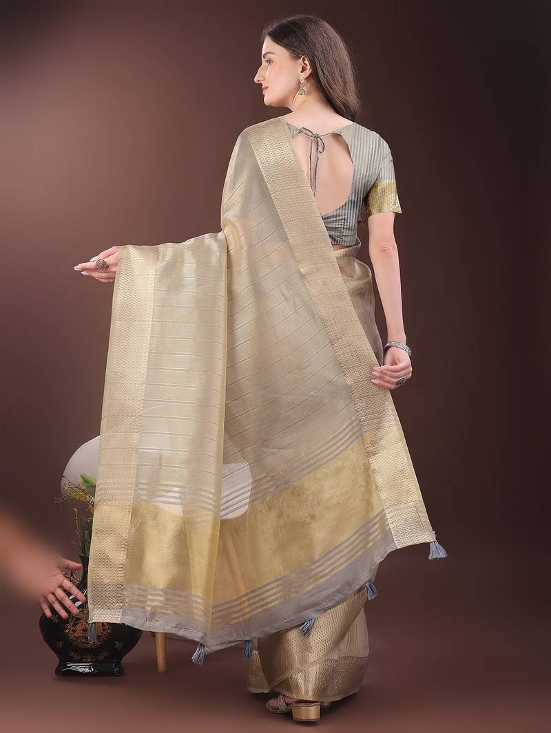 | Product Name | Beige Color Zari Border Orgenza Saree With Blouse | |