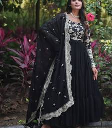 Black color jacquard sequins work georgette gown with dupatta stitched